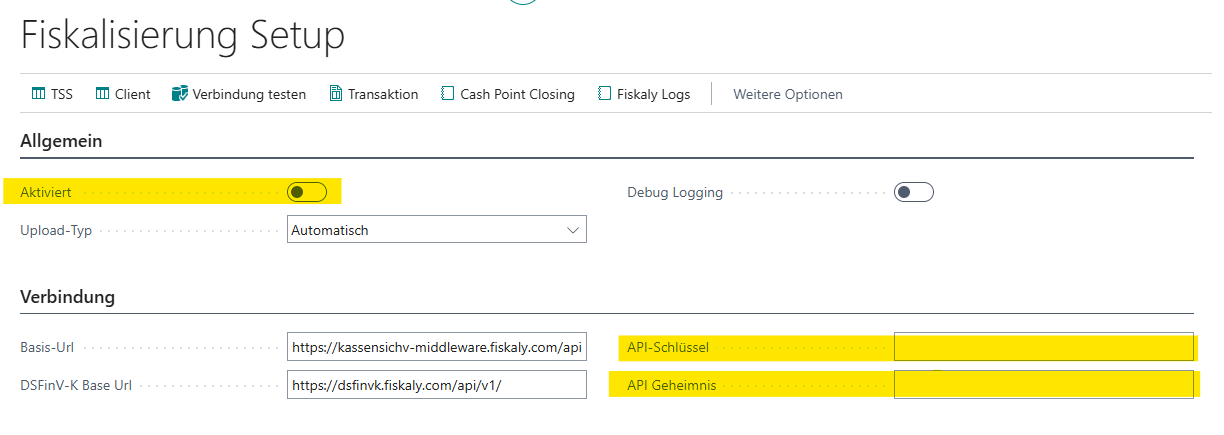 - Deaktivieren von Fiskaly bzw. der Verbindung der neuen Umgebung zur Fiskaly Live-Umgebung: